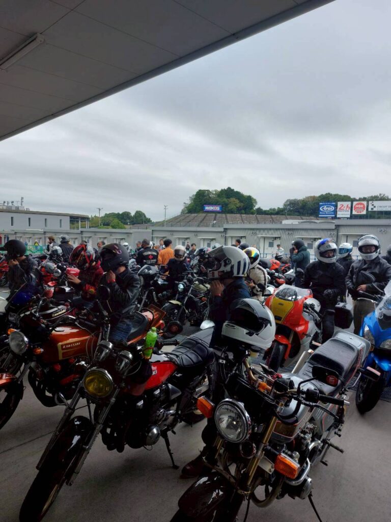 ピットレーン入る手前ではスタートを待つライダーたちがずらり。