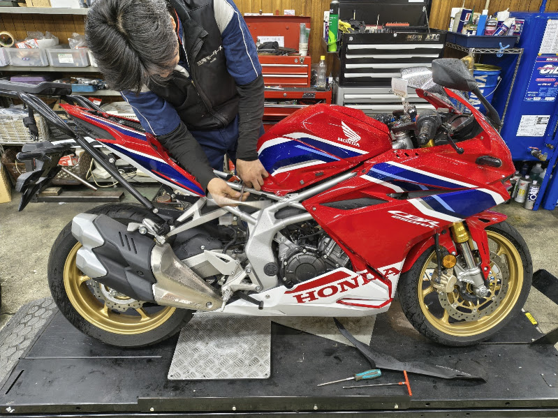 👆今日の整備バイクはホンダのCBR2500RR。