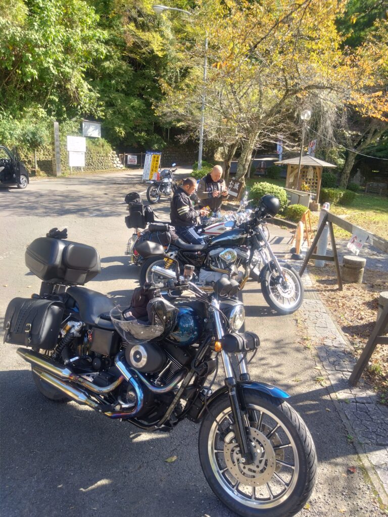 そこから岐阜の富加関の道の駅平成にて世古口会長とハーレーのダイナ。