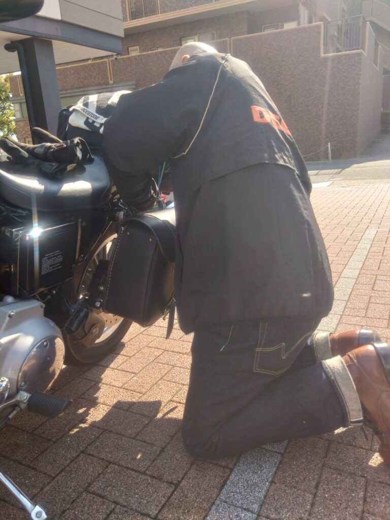 愛車は中古のハーレー。外車ということで、国産車とは勝手が違い、手こずる場面も。