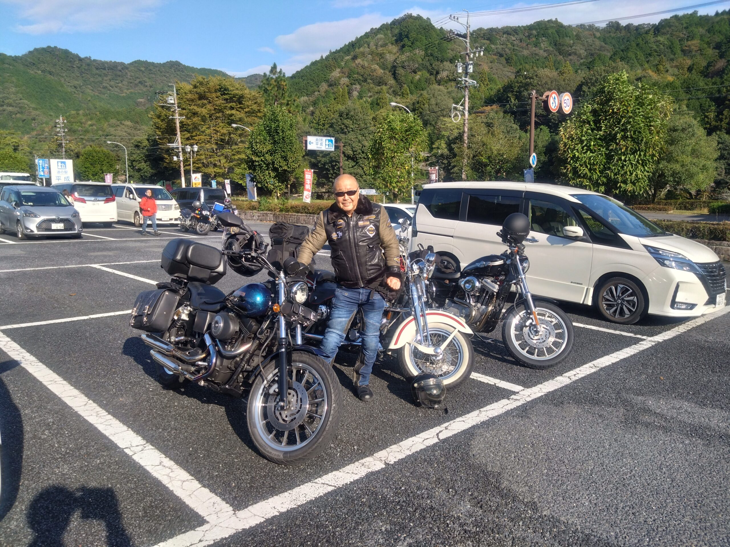 そこから岐阜の富加関の道の駅平成にて世古口会長とハーレーのダイナ。